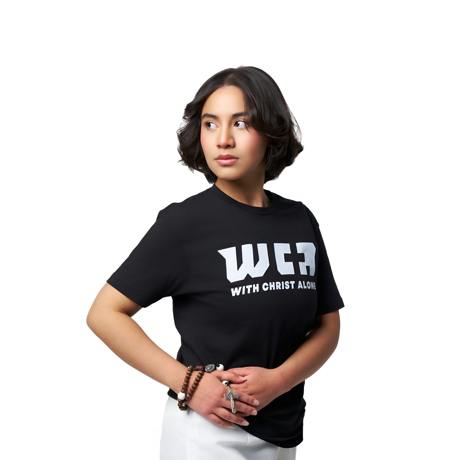 Made for everyday wear, this unisex tee is crafted from premium 100% combed ring-spun cotton for a soft, lightweight feel and a modern fit. Bold yet simple, it features the WCA logo and With Christ Alone across the front—a reminder that real strength begins with surrender to Christ.